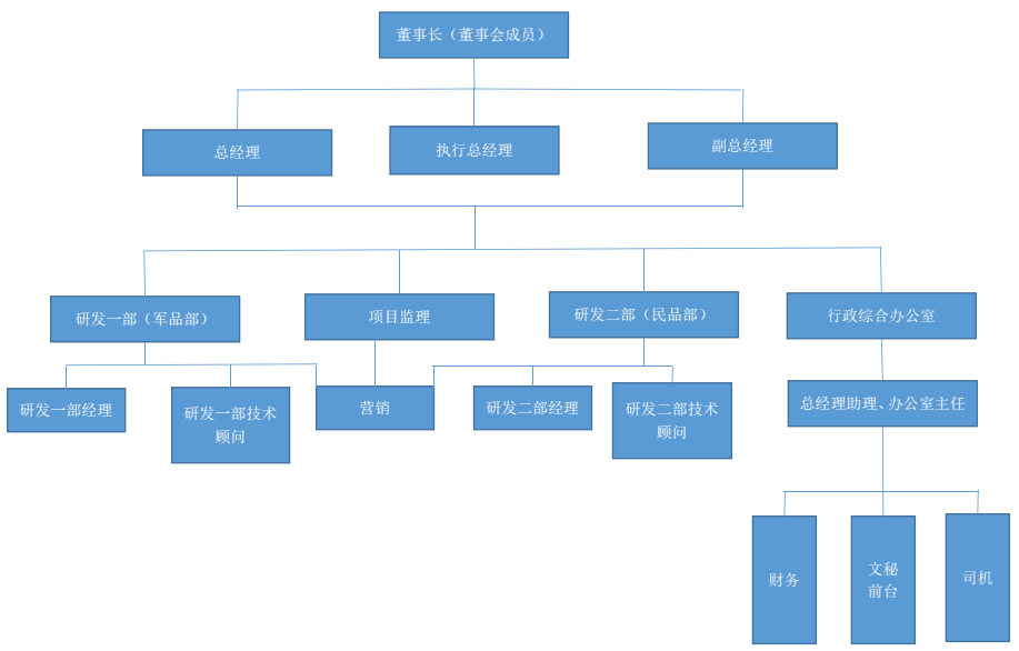 南京黄瓜视频成人测控技术有限公司实施董事会领导下的总经理负责制的现代企业管理制度,全面负责企业的生产、经营、技术、营销等各项管理工作,下设副总、项目监理、军品研发部、民品研发部以及行政办公室。